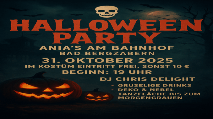 🎃 Magische Nacht in Bad Bergzabern – mit DJ Chris Delight Die Halloween Party Bad Bergzabern rückt näher: Am 31.10.2025 ab 19:00 Uhr wird Ania’s am Bahnhof zum Hotspot der Südpfalz. Ich – DJ Chris Delight – mixe 80er, 90er, 2000er und aktuelle Party-Banger zu einer Nacht, die wir gemeinsam nicht vergessen werden. Im Kostüm: Eintritt frei 🔊 Vibes & Sound: Party-Highlights für deine Halloween-Nacht Von kultigen Klassikern bis zu frischen Edits: Mein Set treibt euch auf die Tanzfläche – mit Gänsehautmomenten, Mitsing-Refrains und Drops, die sitzen. Nebel, Licht und die Kostüme machen die Atmosphäre komplett – perfekt für Fotos, Reels und gemeinsame Erinnerungen. 👻 Deal des Abends & Ablauf Einlass: ab 19:00 Uhr Location: Ania’s am Bahnhof, Bad Bergzabern Eintritt: frei im Kostüm • ohne Kostüm 10 € Dresscode: gruselig, kreativ, witzig – du entscheidest Sichere dir deinen Abend bei der Halloween Party Bad Bergzabern – komm früh, schnapp dir deine Crew und feier […]